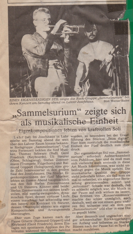 Verblüffend an "Sammelsurium" ist die eigenständige Synthese aus sakraler Harmonie und Jazz-Rock auf einem für Amateurgruppen erstaunlich hohen Niveau. In den nach formal klassischen Grundsätzen aufgebauten selbstkomponierten und arrangierten Stücken sind musikalische Stilelemente von der Vegangenheit bis zur Gegenwart ohne sich störende Gegensätze reibungslos verarbeitet. Gelöste Improvisationen über über qicklebendigem "Funk-Rhythmus" gehen nahtlos in dichte und intellektuell angehauchte sakrale Jazz-Rock-Alterationen über, die durch Uli Steurers klassisch zeitlosen Altflöten- und Oboenparts ein stilistisch markantes Kennzeichen mit hohem Wiedererkennungswert sind.